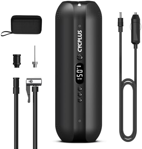 CYCPLUS 12V DC/AC Luftpumpe - Tragbare elektrische Mini Reifenpumpe mit 50PSI für Fahrräder, Motorräder und AutosCYCPLUS 12V DC/AC Luftpumpe – Tragbare elektrische Mini Reifenpumpe mit 50PSI für Fahrräder, Motorräder und Autos
