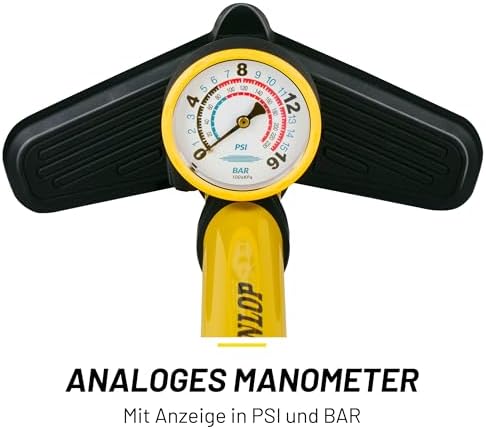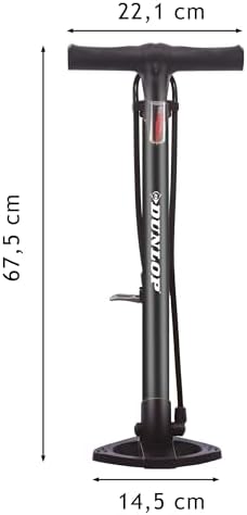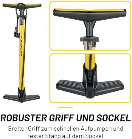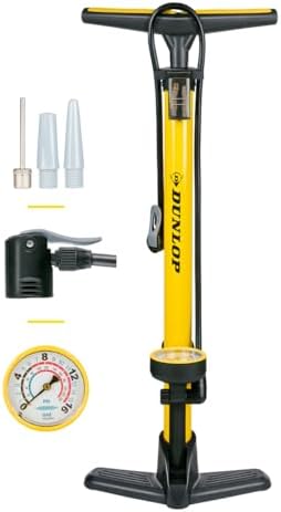 Dunlop Fahrradpumpe mit Doppelventil - Hochdruck Fußpumpe für alle Ventile bis 12 Bar - Ideal für RadfahrerDunlop Fahrradpumpe mit Doppelventil – Hochdruck Fußpumpe für alle Ventile bis 12 Bar – Ideal für Radfahrer