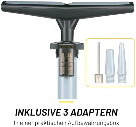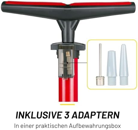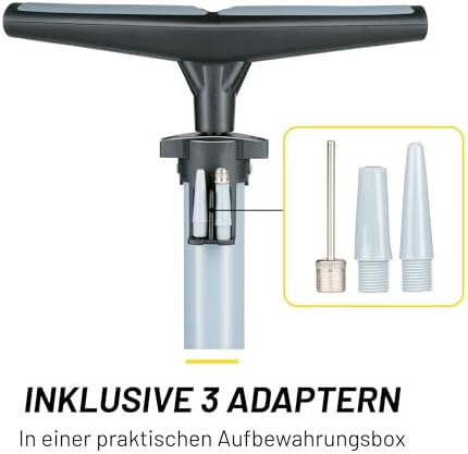 Zusätzlich wird diese Fahrradpumpe mit nützlichem Zubehör geliefert, darunter Adapter für Bälle und Schwimmbecken. Dadurch erhältst du eine vielseitige Fußpumpe, die nicht nur für Fahrräder, sondern auch für Sport- und Freizeitartikel geeignet ist. So bist du bestens gerüstet für jede Situation, sei es im heimischen Garten oder beim Sport im Freien.