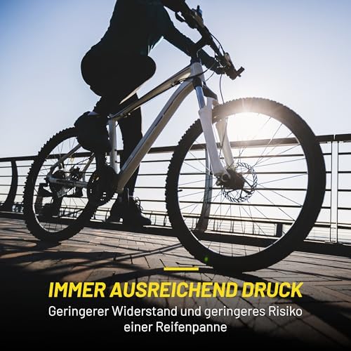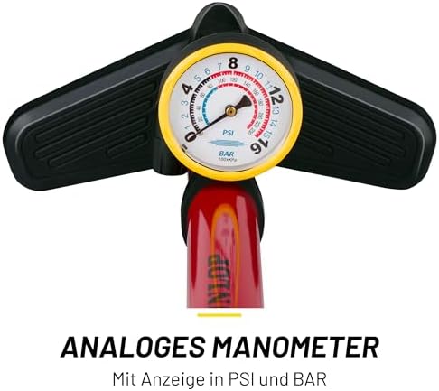 • Praktischer Druckmesser: Integrierte Druckmessung bis zu 160 PSI (11 Bar) ermöglicht präzises Aufpumpen und sorgt für optimalen Reifendruck.