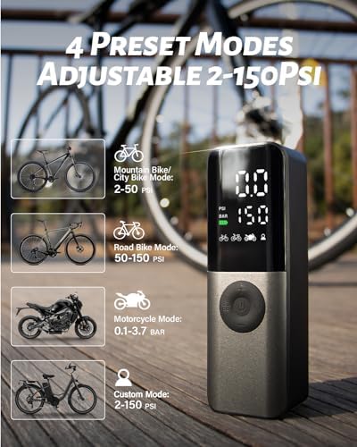 Elektrische Fahrradpumpe von – Mini Luftpumpe 150PSI mit digitalem Druckmesser für Rennrad, Mountainbike & E-BikeElektrische Fahrradpumpe von – Mini Luftpumpe 150PSI mit digitalem Druckmesser für Rennrad, Mountainbike & E-Bike