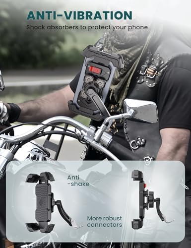Die Grefay Motorrad Handyhalterung bietet Ihnen eine innovative doppelte Stoßdämpfung, die speziell entwickelt wurde, um Ihr Handy und Ihre Kamera vor hochfrequenten Vibrationen zu schützen. Während des Fahrens mit hohem Tempo können die von Ihrem Motorrad erzeugten Vibrationen zu irreversiblen Schäden führen. Im Gegensatz zu vielen anderen Produkten auf dem Markt, die keine stoßfesten Designs aufweisen, wandelt diese Halterung hochfrequente Vibrationen in niedrigere Frequenzen um und minimiert somit die potenziellen Schäden an Ihrem Gerät.