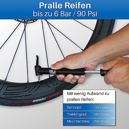 Mit einer beeindruckenden Pumpenleistung von bis zu 6 Bar sorgt diese handliche Minipumpe dafür, dass du deine Reifen schnell und effizient aufpumpen kannst. Mit einem Gewicht von nur 90g ist sie äußerst kompakt und ideal für den Einsatz unterwegs. Perfekt für Radtouren, Notfälle oder jederzeit, wenn du deine Reifen auf den optimalen Druck bringen möchtest.