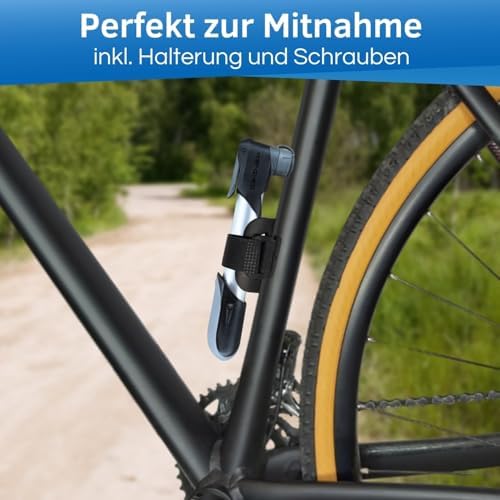 Im Lieferumfang der Fahrrad Luftpumpe ist eine praktische Rahmenhalterung enthalten. Mit den mitgelieferten Schrauben kannst du die Pumpe sicher an deinem Fahrradrahmen befestigen, was unterwegs eine enorme Zeitersparnis bedeutet. Nie wieder das Problem, die Pumpe während der Fahrt suchen zu müssen!