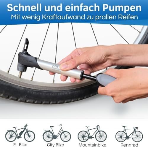 Diese Mini-Pumpe ist die perfekte Lösung für alle Fahrradliebhaber, die Wert auf Effizienz, Tragbarkeit und Langlebigkeit legen. Sichere dir jetzt diese praktische und funktionale Pumpe für ein unbeschwertes Fahrerlebnis!