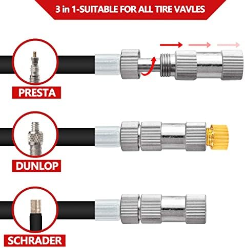- Vielfältige Ventilkompatibilität: Schneller Wechsel zwischen Presta-, Schrader- und Dunlop-Ventilen für jede Fahrradart.
