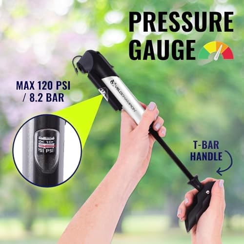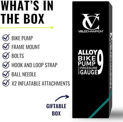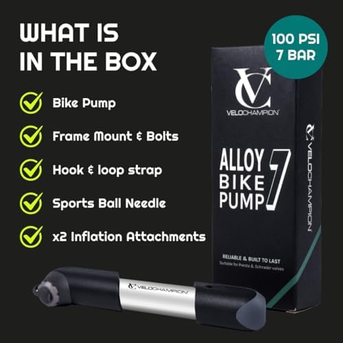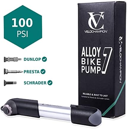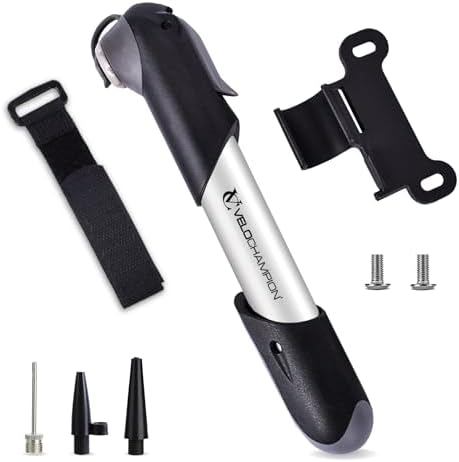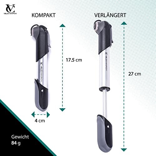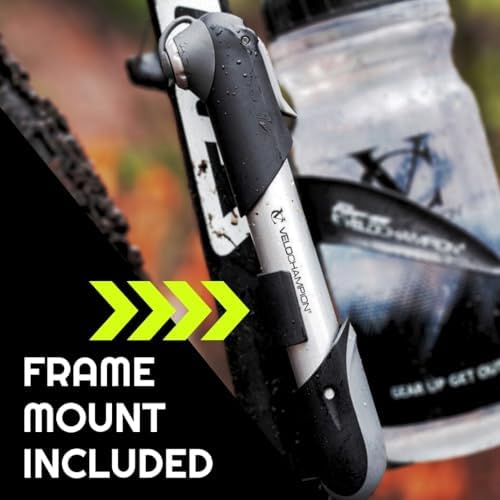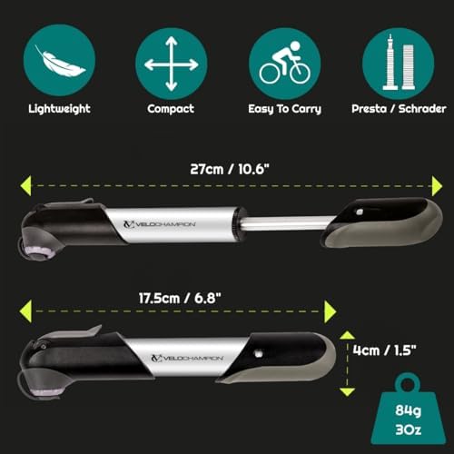 VeloChampion Mini Fahrradpumpe - Tragbare & kompakte Pumpe mit Rahmenhalterung für Presta, Schrader & DunlopVeloChampion Mini Fahrradpumpe – Tragbare & kompakte Pumpe mit Rahmenhalterung für Presta, Schrader & Dunlop