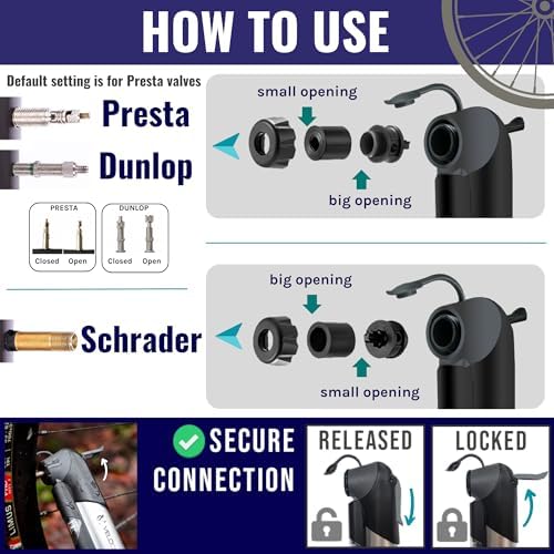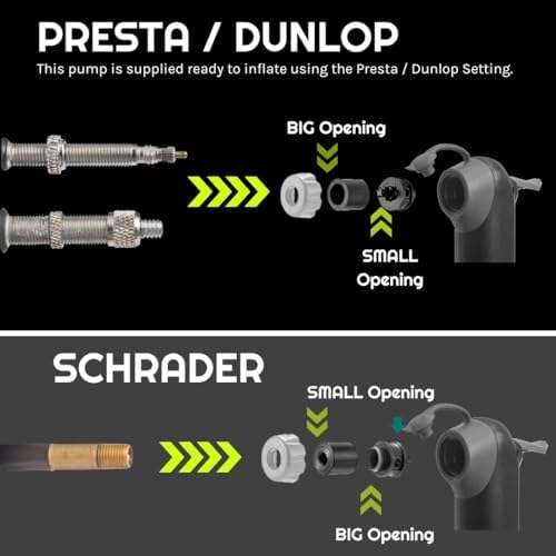 • Vielseitige Ventilanpassung – Ideal für Presta, Schrader und Dunlop Ventile, passend für alle Fahrräder wie Mountainbikes, Rennräder und BMX-Räder.